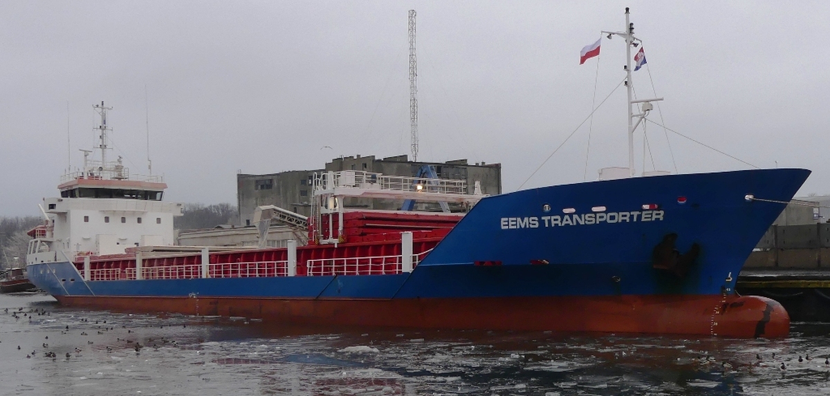 Przy Nabrzeżu Gdańskim w darłowskim porcie handlowym 26 stycznia 2019 zacumował ósmy już z kolei w tym roku statek Eems Transporter bandery holenderskiej, którego portem macierzystym jest miasto Delfzijl w północno wschodniej Holandii. Ten statek o pojemności brutto 2186 ton i długości 90 metrów przybył po ładunek otrąb do Morskiej Agencji Gdynia Oddział w Darłowie. Tego samego dnia wyszedł z portu w Darłowie m/v Helga bandery Antiqua & Barbuda, przystosowany do transportu żwiru. Obecnie płynie on do portu Varberg w Szwecji.
