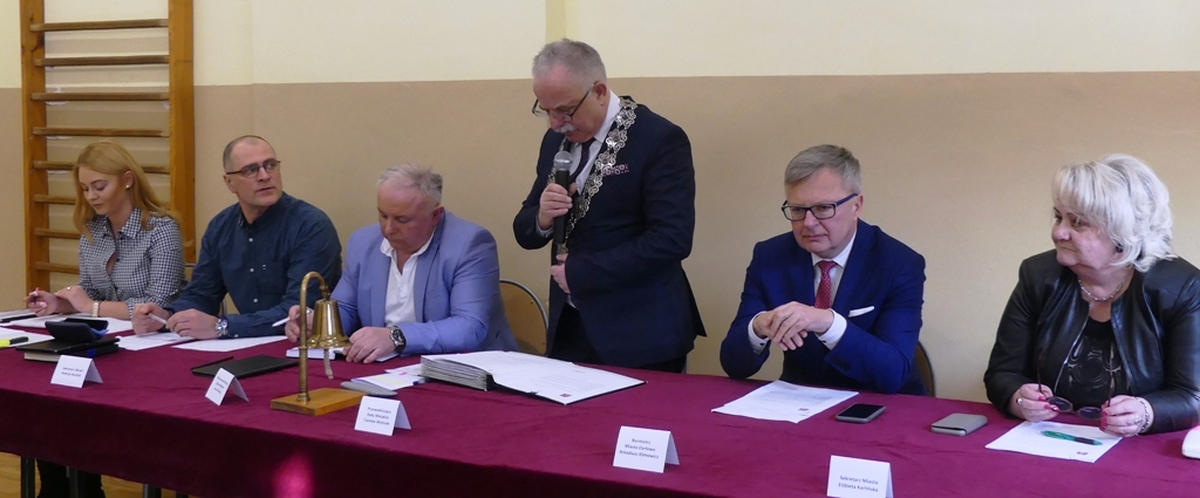 Ze względu na remont miejskiego ratusza czwarta w tej kadencji nadzwyczajna sesja Rady Miejskiej obradowała 1 lutego 2019 w sali gimnastycznej Miejskiego Gimnazjum im. S. Dulewicza.
