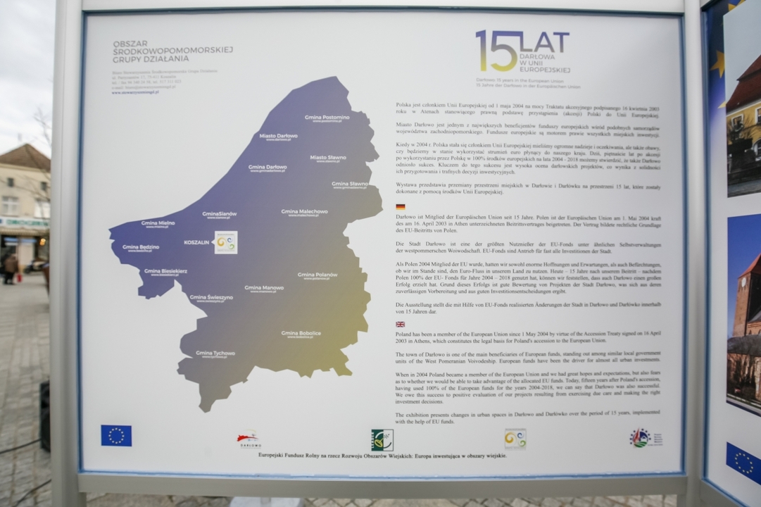 7 marca, to dla Darłowa symboliczna data. Uznawana ona jest za Dzień Pioniera Ziemi Darłowskiej. Z tej okazji na darłowskim rynku otwarto pionierską, bo pierwszą tego typu wystawę plenerową poświęconą 15-leciu przystąpienia Polski do Unii Europejskiej, a właściwie przemian inwestycyjnych które zaszły na przestrzeni tych lat w Darłowie.