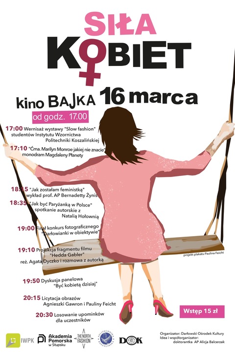 Darłowski Ośrodek Kultury im. L. Tyrmanda w Darłowie zaprasza do udziału w wydarzeniu pn.: „Siła Kobiet" odbędzie się ono 16 marca 2019 roku, w Kinie Bajka w Darłowie. W programie: