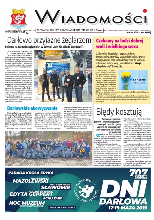 W numerze także między innymi: Dni Darłowa 2019, (Za)Działali Lokalnie za 85 tys. zł, planowane przetargi, wieści o darłowskim sporcie, informacje ze szkół i inne godne uwagi artykuły.