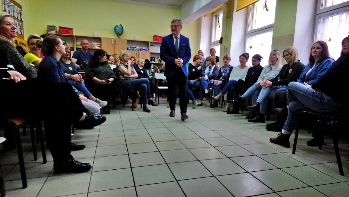 W piątkowe dopołudnie Burmistrz Miasta spotkał się z protestującymi nauczycielami w Miejskim Gimnazjum i Szkole Podstawowej nr 3. Spotkał się, aby zapewnić o swoim poparciu dla ich w pełni uzasadnionych postulatów. Status tego zawodu, jego prestiż i nie do przecenienia rola nauczycieli w kształceniu i wychowaniu uczniów, nakazuje solidaryzowanie się z tą grupą zawodową.