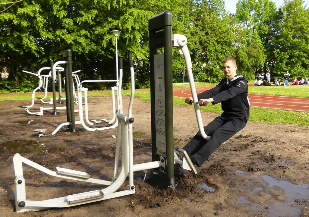 Pomiędzy bieżnią, płotem a budynkiem Szkoły zainstalowano siłownie zewnętrzne takie jak np.: wyciskanie z dwóch stron, wyciąg górny z dwóch stron, biegacz z jednej strony z drugiej twister, prasa do nóg z jednej strony z drugiej twister, jeździec z jednej strony z drugiej rower, narciarz z jednej strony z drugiej wioślarz, podciąganie dla nóg z dwóch stron, oraz motylek z dwóch stron. Ponadto wykonano stoły betonowe do gry w szachy, chińczyka i tenisa oraz elementy małej architektury, w tym grill, stoły piknikowe, ławki i kosze na śmieci, a także zainstalowano lampy parkowe - poinformowała nas Magdalena Miszke, dyrektor Zespołu Szkół Morskich w Darłowie. Do całkowitego zakończenia prac pozostało jedynie posianie trawy. Projekt ,,Budowa publicznej infrastruktury turystycznej i rekreacyjnej na terenie Zespołu Szkół Morskich w Darłowie, został zrealizowany w ramach programu operacyjnego ,,Rybactwo i Morze. Przedsięwzięcie pozwoliło na uzyskanie dotacji w wysokości 152.438 zł, ze środków Unii Europejskiej, co stanowi 85% ogółu kosztów. Wykonawcą robót jest firma: NOBA-EXIM Bartłomiej Norkowski z Kawęczyna, która wygrała nieograniczony przetarg na to zadanie. Inwestycje zrealizowano kosztem 177.120 złotych.