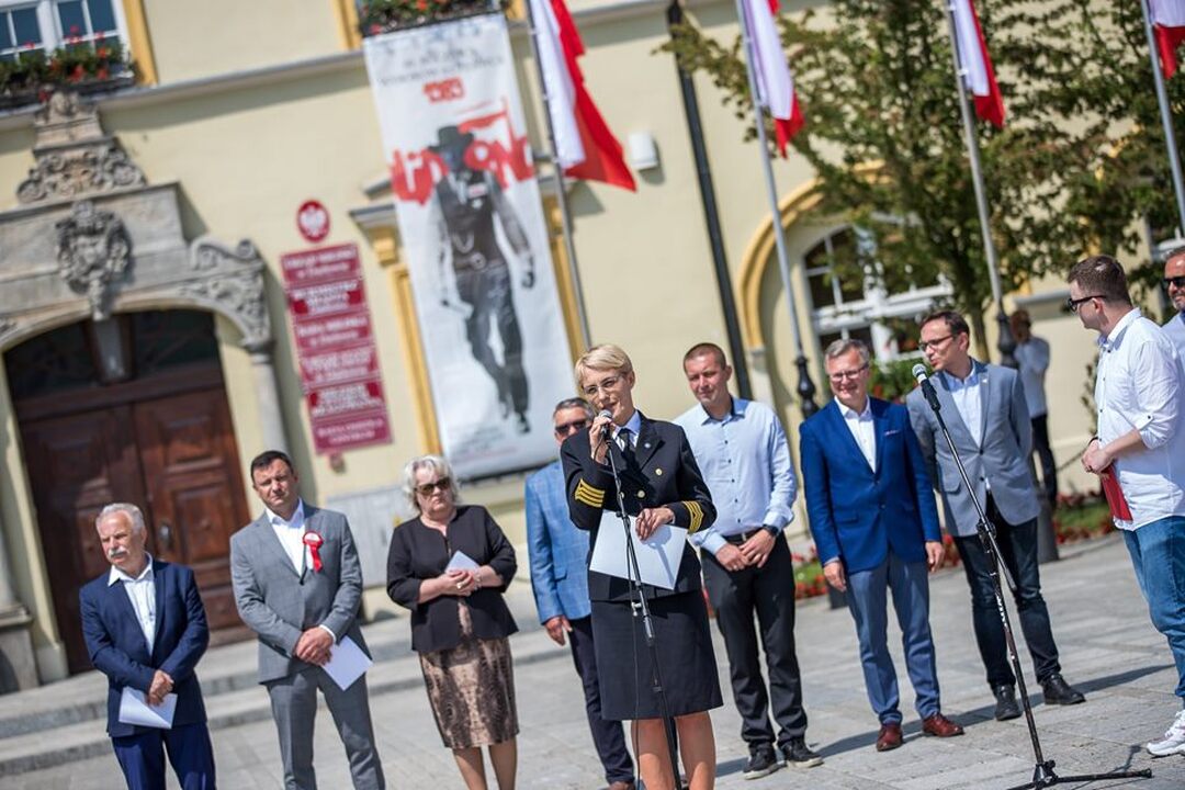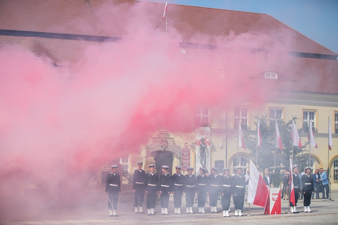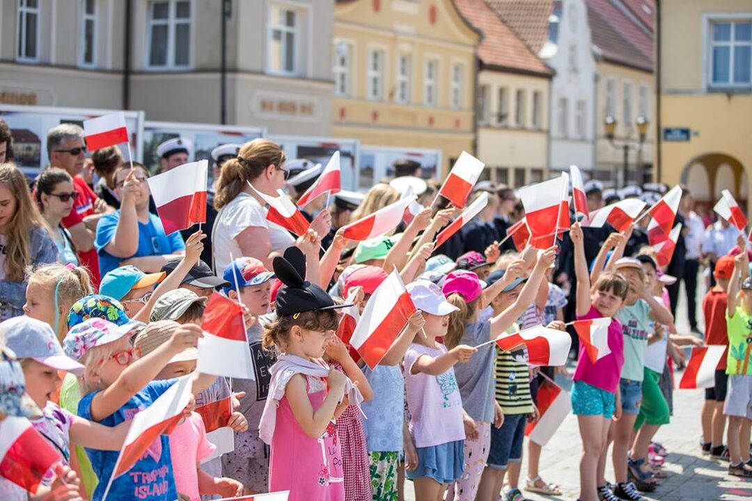 W samo południe, tuż po wybrzmiałych z wieży Kościoła Mariackiego dzwonach i hejnale miejskim, zebrani na rocznicowym wydarzeniu wspólnie odśpiewali hymn państwowy – „Mazurka Dąbrowskiego”. Tuż po tym, utrzymując charakter happeningu, swoje okolicznościowe przemówienia wygłosili kolejno: Dyrektor Zespołu Szkół Morskich – Magdalena Miszke, Starosta Sławieński – Wojciech Wiśniowski i Burmistrz Królewskiego Miasta Darłowo – Arkadiusz Klimowicz.