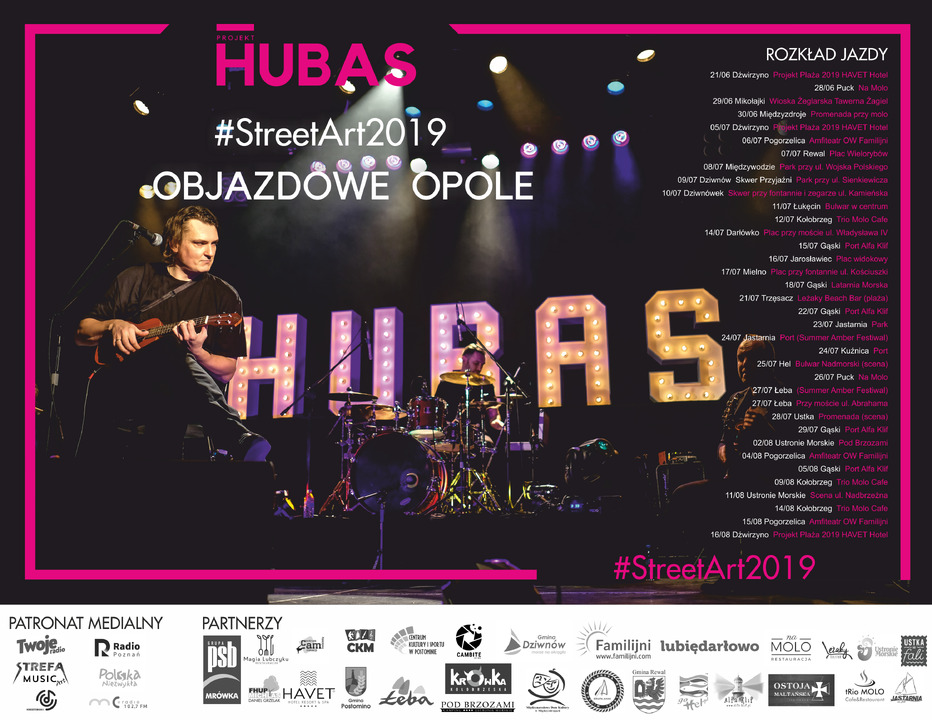Wraz z najpiękniej zachodzącym w Darłówku słońcem, w niedzielę (14 lipca 2019 r.) odbędzie się klimatyczny koncert Projektu HUBAS, który w ramach trasy koncertowej #StreetArt2019 zaprezentuje się darłowskiej publiczności.
