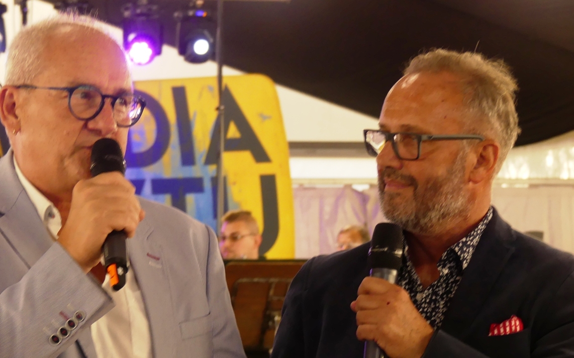 Uroczystą galą i koncertem Filharmonii Koszalińskiej w hali namiotowej rozpoczął się 18 lipca 2019 w Darłowie Dziewiąty Festiwal Media i Sztuka. Oficjalnego otwarcia dokonali Arkadiusz Sip dyrektor programowy i artystyczny Festiwalu i Michał Olszański dziennikarz radiowy i telewizyjny. Prowadzący festiwal powitali: burmistrza miasta Arkadiusza Klimowicza z małżonką, Honorowego Obywatela darłowskiego grodu i znanego pisarza Marka Krajewskiego z małżonką, senatora RP Piotra Zientarskiego z małżonką, Cezarego Łazarewicza dziennikarza i publicystę, jednego z pomysłodawców FMiS , samorządowców miasta, powiatu i województwa zachodniopomorskiego, gości festiwalowych i publiczność oraz biuro promocji miasta z jego szefową Magdą Burduk na czele.