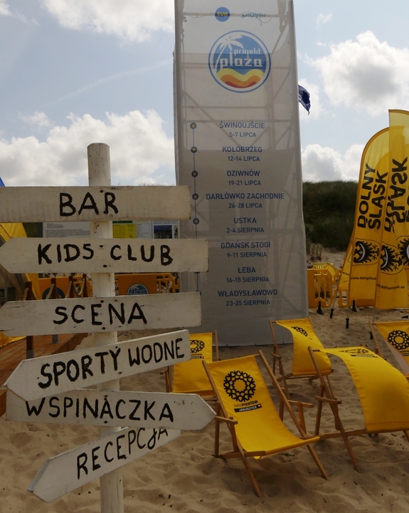 W miniony weekend 26-28 lipca 2019 Darłowo na zachodniej plaży gościło ekipę TVN, która oferowała plażowiczom moc atrakcji dla każdego. Projekt Plaża powołano do życia kilkanaście lat temu z inicjatywy Oliviera Janiaka ze stacji TVN. Od tego czasu wraz z mobilnym miasteczkiem, TVN przez dwa wakacyjne miesiące przemierza najlepsze plaże polskiego wybrzeża oferując w każdy weekend bezpłatną rozrywkę plażowiczom, a szczególnie całym rodzinom. Niemal nieustannie trwały konkursy nagrodami, tańce, zabawy oraz promocje. Tym razem na darłowskiej plaży promował się Dolny Śląsk ze swoimi zamkami i kopalnią złota. Najmłodsi korzystali z utworzonej strefy „Kids Club”, ściany wspinaczkowej, placu zabaw, mini boisk do kosza i piłki kopanej oraz szukali złota w misach z piaskiem i wodą. Starsi skakali na wodnej trampolinie, pływali na desce z wiosłem oraz tańczyli zumbę.