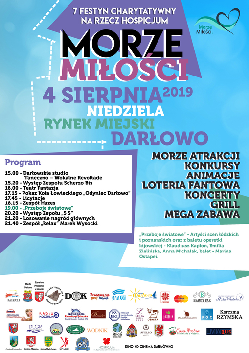 7. Festyn charytatywny na rzecz Domu Hospicyjno-Opiekuńczego Caritas im. Bpa Czesława Domina w Darłowie „Morze Miłości” to swoiste morze atrakcji: konkursy, animacje, koncerty, grill, loteria fantowa, myśliwskie stoisko edukacyjne dla dzieci, pokazy sokolnicze i wiele, wiele innych – wszystko organizowane przez Fundacja Charytatywna "Morze Miłości".