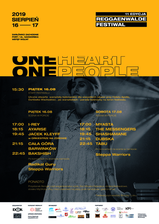 Już w najbliższy piątek 16 sierpnia 2019 r. rozpoczyna się w Darłówku Zachodnim przy ul. Nadmorskiej na nabrzeżu w pobliżu Stacji Ratownictwa Morskiego SAR, uczta muzyczna. O godzinie 15.30 rusza XI edycja Festiwalu Reggaenwalde, a pierwszy popis muzyczny w ramach imprezy to uliczne warsztaty bębniarskie na skwerku przy Hotelu APOLLO w Darłówku Wschodnim. Po warsztatach ok. godz. 16.30 ruszy tradycyjna parada bębniarzy na miejsce festiwalu w porcie w Darłówku Zachodnim, gdzie od godziny 17.00 rozpoczną się koncerty. Festiwalowi towarzyszyć będzie Eko Wioska Dziecięca, Przystanek Bengal, czyli wegetariańska uczta, stragany festiwalowe, w tym stoisko My3Koty i Psy, mecz siatkówki na plaży, i inne atrakcje festiwalowe. Drugiego dnia 11. Edycji Festiwalu Reggaenwalde występy zespołów i kapeli rozpoczną się o godz. 17.