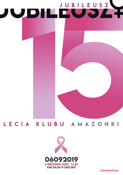 Klub Amazonki w Darłowie zaprasza na uroczyste obchody Jubileuszu 15-lecia Klubu Amazonki w Darłowie, który odbędzie się w Kinie Bajka w Darłowie (ul. Morska 56) dnia 6 września 2019 roku o godzinie 12:00.