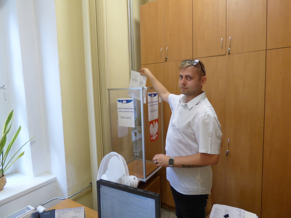 Pierwszy punkt mieści się w Urzędzie Miejskim w Darłowie w pokoju nr 8. Od godz. 7.00 do godz. 15.00 można tutaj podejść i przy pomocy pracownika zagłosować w formie papierowej na wybrany 1 z 7 projektów inwestycyjnych i 1 z 3 projektów społecznych.