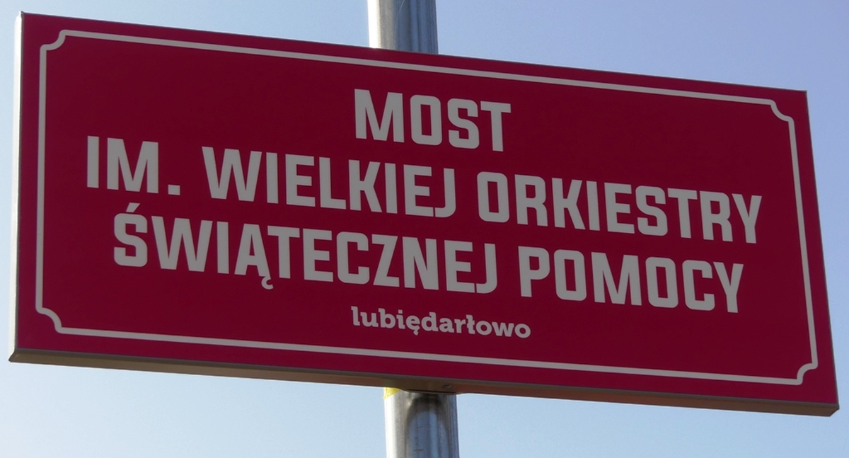 Pomysłodawcą nadania mostowi imienia WOŚP jest Daniel Frącz, wolontariusz, który siadając przy komputerze poprzez portal internetowy sam zebrał 25 tysięcy złotych na WOŚP. Rada Miejska jednomyślnie podjęła uchwałę o nadaniu imienia WOŚP, tak zasłużonej dla naszego kraju woluntarystycznej instytucji. Słynnym Siema, siema powitały Jurka Owsiaka: miejscowe sztaby WOŚP, uczniowie Zespołu Szkół Morskich, licealiści, uczniowie Szkół Podstawowych, przedszkolaki i społeczeństwo Królewskiego Miasta Darłowa. W imieniu burmistrza Darłowa Czesław Woźniak przewodniczący Rady Miejskiej i radna Sejmiku Zachodniopomorskiego Elżbieta Karlińska wręczyli dyrygentowi WOŚP „Statuetkę Złotego Rybaka” i okolicznościowy dyplom. Prezes Fundacji WOŚP odsłonił tablicę z imieniem mostu, a następnie razem z wraz z szefami sztabów i sekretarzem UM Elżbietą Karlińską przeciął biało- czerwoną wstęgę. W momencie jej przecięcia wypuszczono w niebo setki balonów w kształcie serduszka Wielkiej Orkiestry Świątecznej Pomocy, a trębacze odegrali hejnał.