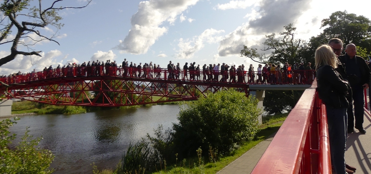 -Najpiękniejsze jest to, że jesteśmy ponad podziałami. My jesteśmy ze sobą. Za to wam dziękuję. Przyjemnie jest tu przyjechać i otworzyć tak piękny most w asyście uczniów Szkoły Morskiej w najpiękniejszych marynarskich mundurach. Tuż po otwarciu stalowego mostu przespacerowano się po jego nawierzchni na Wyspę Łososiową. Tam darłowskie sztaby WOŚP: SP im. Lotników Morskich, SP im. Króla Eryka pomorskiego, ZS im. S. Żeromskiego, ZS Morskich, Miejskie Gimnazjum oraz Gmina Darłowo otrzymały specjalne podziękowania od Jurka Owsiaka za organizację charytatywnej zbiórki pieniędzy na zakupy nowoczesnego sprzętu medycznego.