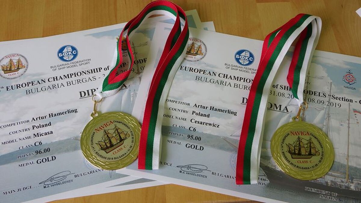 W bułgarskim mieście Burgas odbyły się w dniach 31.08 – 8.09.2019 roku Mistrzostwa Europy w Modelarstwie Okrętowym klas „C” (wystawowe modele statyczne) federacji Naviga. Oceniano w nich prace modelarzy z całego kontynentu. Dwa złote medale i jeden medal srebrny w klasie C 6 (modele plastikowe) otrzymał za swoje prace Artur Hamerling. Złotymi medalami nagrodzono modele pancernika rosyjskiego „Cesarewicz” oraz pancernika japońskiego „Mikasa” wykonane przez niego w skali 1/350. Srebrny medal otrzymał model korwety kanadyjskie „Snowberry” w skali 1/144.