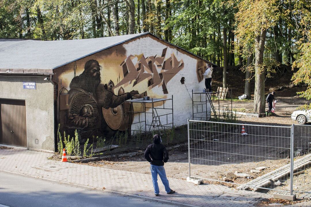 Talent, pomysł oraz farba w sprayu. To wszystko w połączeniu musi dać świetny efekt. I tak było w tym przypadku. W głowie jednego z utalentowanych mieszkańców Darłowa zrodził się pomysł, aby swoją twórczość wyrazić w większym formacie z nawiązaniem do lokalnej historii. "Jery" (pseudonim artysty) szybko wziął sprawy w swoje zdolne dłonie. Do współtworzenia muralu zaprosił lęborskiego przedstawiciela sceny graffiti - Patryka "Paka" Łukaszuka (Paka Art Studio). Panowie "rozbili prywatne skarbonki" i zakupili puchy. Dalej poszło z górki.