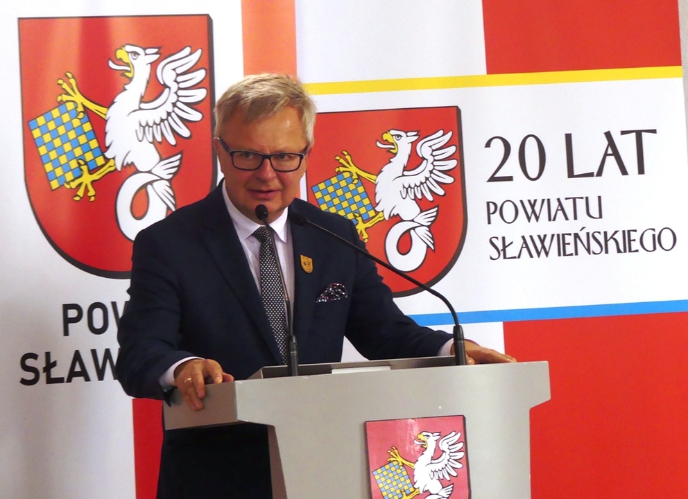 W sali herbowej Urzędu Miejskiego w Sławnie, zbudowanej na początku XX wieku specjalnie na obrady starostwa powiatowego 4 października 2019 r., odbyła się uroczysta sesja Rady Powiatu Sławieńskiego z okazji 20- lecia powiatowego samorządu. Na wstępie przewodniczący Rady Powiatu Sławieńskiego Tomasz Bobin powitał przybyłych i w postaci projekcji multimedialnej zaprezentował w skrócie dwudziestoletnią historię Powiatu Sławieńskiego.