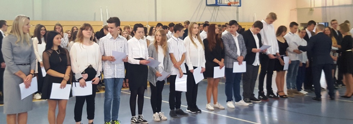 Po odegraniu Hymnu Państwowego i odśpiewaniu Hymnu Szkoły głos zabrała dyrektor ZS Joanna Witkowska. Bardzo ciepło przywitała przybyłych gości w osobach: przewodniczącego Rady Miejskiej Czesława Woźniaka, przewodniczącej komisji edukacji kultury i turystyki Krystynę Różańską, przedstawicieli Rady Rodziców, grono nauczycielskie. Następnie w sposób szczególny, powitała 110 uczniów czterech klas pierwszych (dwóch klas LO i dwóch szkoły branżowej). Ślubowano na Sztandar Szkoły. W dalszej części uroczystości wytypowane trójki klas pierwszych wzięły udział w zgaduj zgaduli na temat znajomości szkoły. Zwyciężyła klasa IA z LO.
