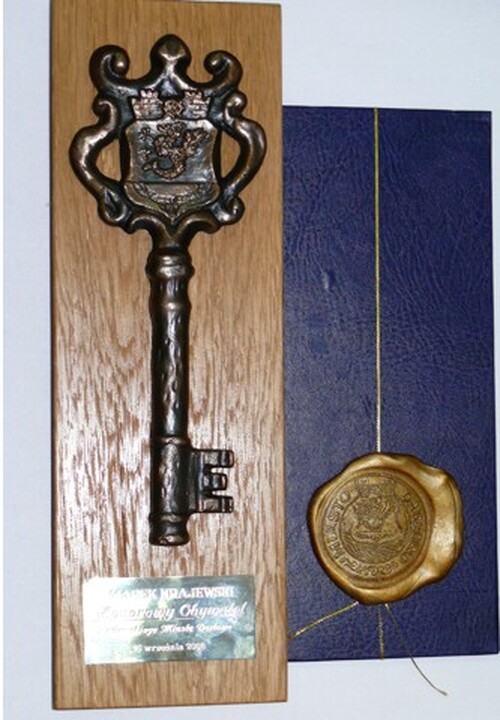 Na wniosek burmistrza Darłowa Arkadiusza Klimowicza Radni na sesji Rady Miejskiej 16 września 2008 r. podjęli jednomyślnie uchwałę o nadaniu Markowi Krajewskiemu Honorowego Obywatelstwa Miasta Darłowo. Wręczenie aktu Honorowego Obywatelstwa wraz z kluczem do bramy miasta i pieczęcią nastąpi 6 grudnia 2008 r. w Zamku Książąt Pomorskich.