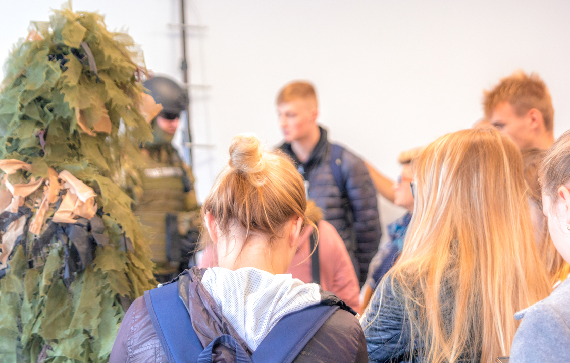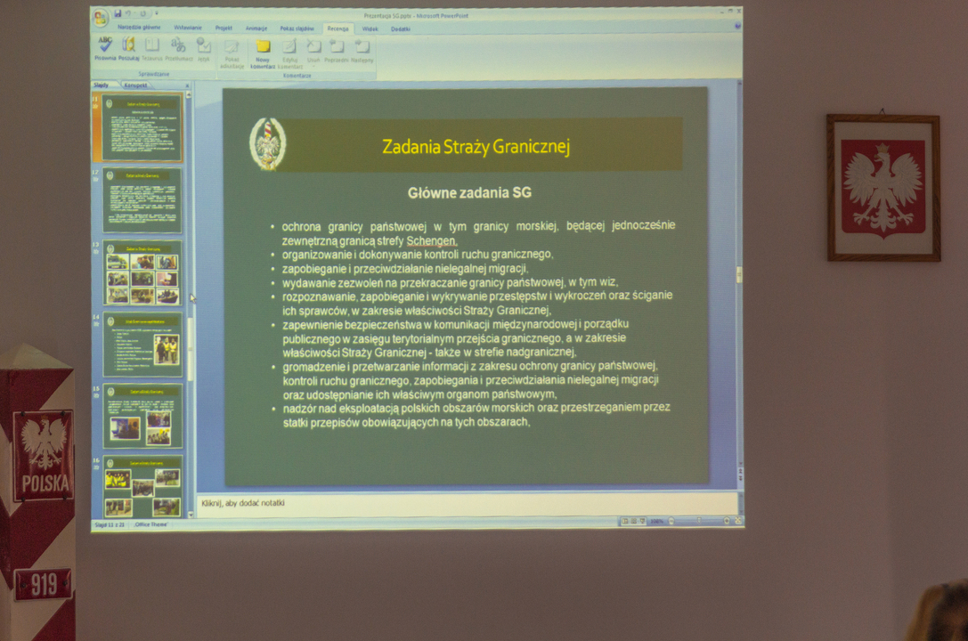 Właśnie w tamtym okresie Straż Graniczna była jedną z dwóch nowoczesnych formacji granicznych strzegących nienaruszalności granic II Rzeczypospolitej Polskiej. Wystawa ukazywała pełnienie służby granicznej przez strażników SG w różnych aspektach działalności: patrolowania pogranicza i prowadzenia wywiadu. Podczas Dnia Otwartego odbył się również pokaz umiejętności psa służbowego do wykrywania narkotyków w zwalczaniu przemytu towarów oraz przestępstw przeciwko monopolom państwowym. Uczniowie mogli się też dowiedzieć, jak wygląda procedura naboru do służby w Straży Granicznej. Atrakcją była prezentacja sprzętu specjalistycznego i wyposażenia funkcjonariusza plutonu specjalnego Morskiego Oddziału Straży Granicznej.