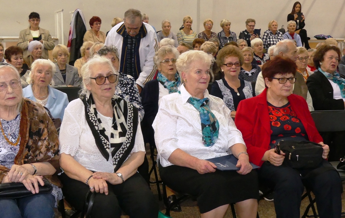 Ponad 300 seniorów z Darłowa w sali sportowej Zespołu Szkół im. Stefana Żeromskiego wzięło udział 24 października 2019 r. w uroczystych obchodach Miejskiego Dnia Seniora.