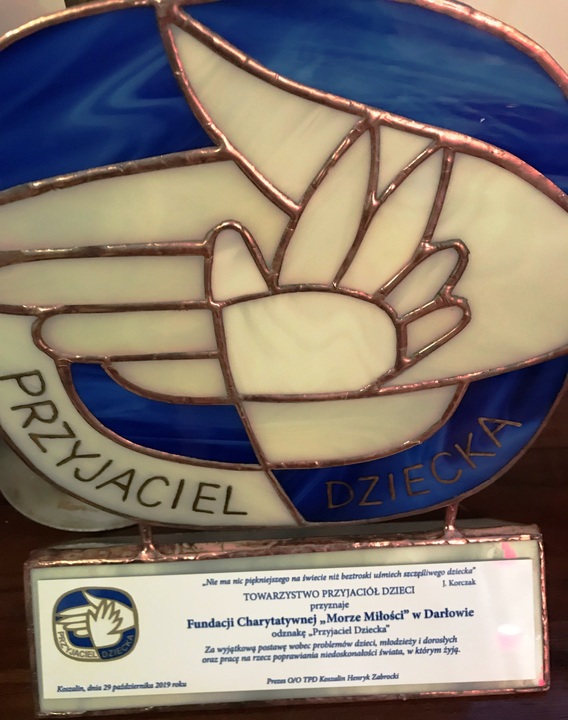Odznakę „Przyjaciel Dziecka” otrzymała darłowska Fundacja Charytatywna „Morze Miłości”. Wyróżnienie przyznało Towarzystwo Przyjaciół Dzieci Oddział Okręgowy w Koszalinie” za wyjątkową postawę wobec problemów Dzieci, Młodzieży i Dorosłych oraz pracę na rzecz poprawiania niedoskonałości świata w którym żyją”. Statuetkę wręczono Joannie Klimowicz podczas uroczystej gali z okazji 100-lecie TPD, jaka miała miejsce 29 października 2019 r. w Filharmonii Koszalińskiej.