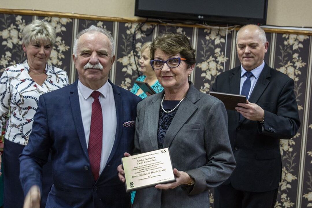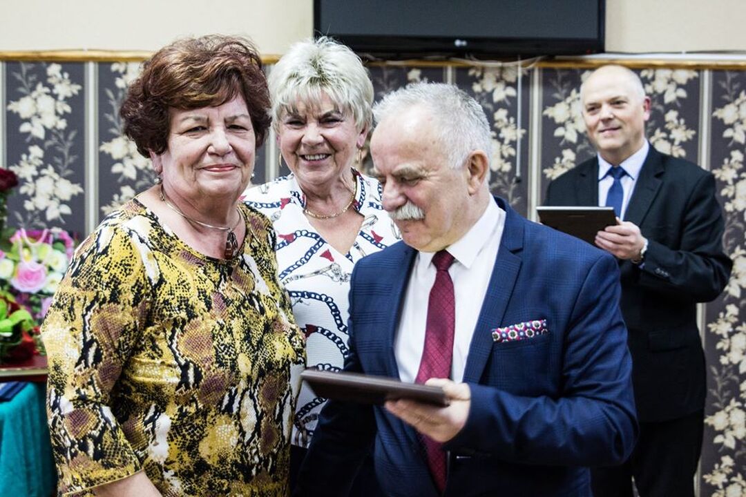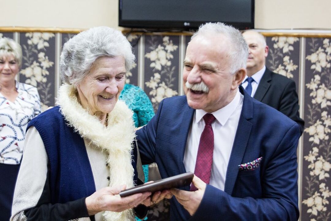 Po Mszy Św. jubilaci przenieśli się do Ośrodka Korsarz. Reprezentujący starostę Tomasz Bobin przekazał życzenia od Starosty Wojciecha Wiśniowskiego. Czesław Woźniak w imieniu burmistrza Arkadiusza Klimowicza- patrona i sponsora uroczystości- wręczył wszystkim pionierom pamiątkowe grawertony z pięknym pamiątkowym wpisem.