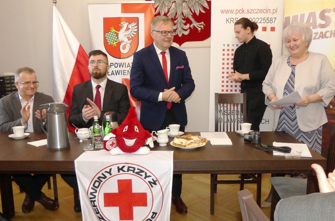 Wczoraj 9.12.2019 w sali konferencyjnej Ratusza Jubileusz 35-lecia obchodził Klub Krwiodawców Kropelka, którym dziesiątki lat kieruje Teresa Gadalińska. Ona to z synem Andrzejem Gadalińskim reaktywowała na przełomie wieków upadający Klub Krwiodawców PCK Kropelka. Na uroczystość przybył Burmistrz Miasta Darłowo- Arkadiusz Klimowicz, Sekretarz Starostwa Powiatowego w Sławnie Waldemar Bąk, przedstawiciel Wójta Gminy Darłowo – Anna Mezgier, Członek Kapituły Odznaki Honorowej Polskiego Czerwonego Krzyża w Warszawie- Bernard Krupski, ierownik Zachodniopomorskiego Oddziału PCK w Koszalinie – Marcin Maślanka