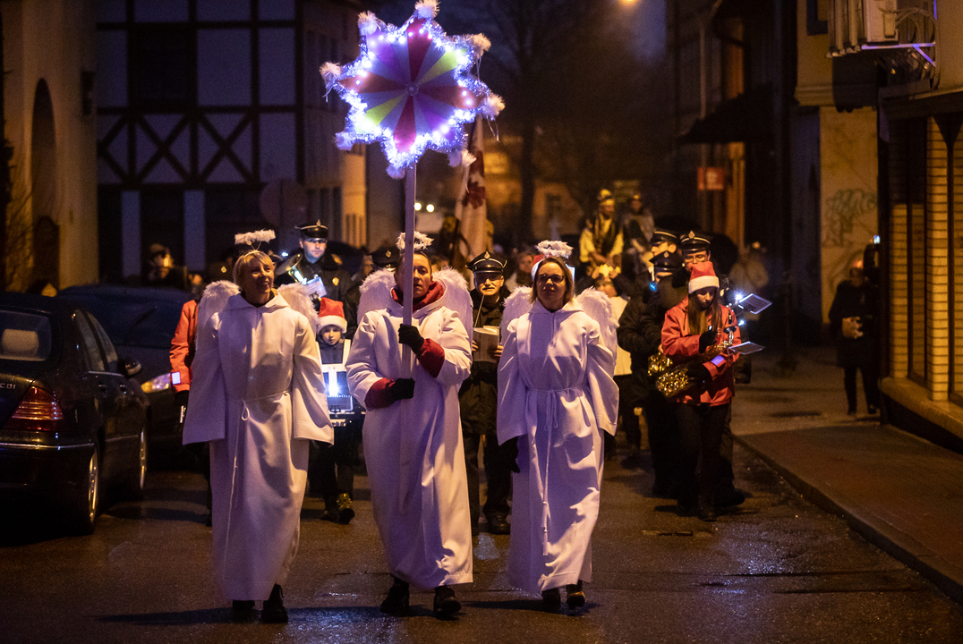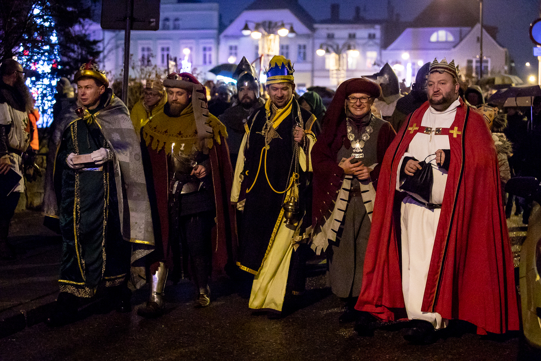 Czterej królowie w towarzystwie rycerzy, pasterzy ze zwierzętami, dzieci w koronach i licznych mieszkańców, konno przejechali przez centrum miasta. Na rynku czekał na nich Herod, w którego wcielił się Burmistrz Darłowa - Arkadiusz Klimowicz. Przekazując i swoje dary w postaci złotych monet (czekoladowych) udali się do kościoła Mariackiego by pokłonić się dzieciątku Jezus.