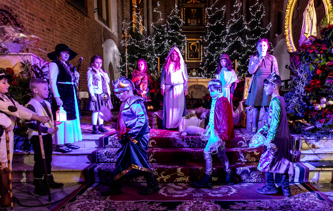 W kościele przy wtórze kolęd powitał ich proboszcz parafii M.B. Częstochowskiej i gwardian klasztoru franciszkanów o Wiesław Przybysz. Całość zakończyły Jasełka wykonane przez dzieci ze Szkoły Społecznej z Darłówka.