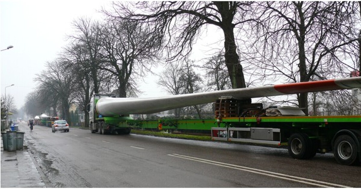 Odnawialna energia wiatrowa ma coraz większe powodzenie na Pomorzu, które dzięki dobrym warunkom wietrznym, powoli staje się krainą, która stoi wiatrakami. Do kolejnej siłowni wiatrowej przez Darłowo transportowane są trzy skrzydła 40 metrowej długości. Ich transportem zajmuje się szczecińska firma Eurokran.Leszek Walkiewicz
