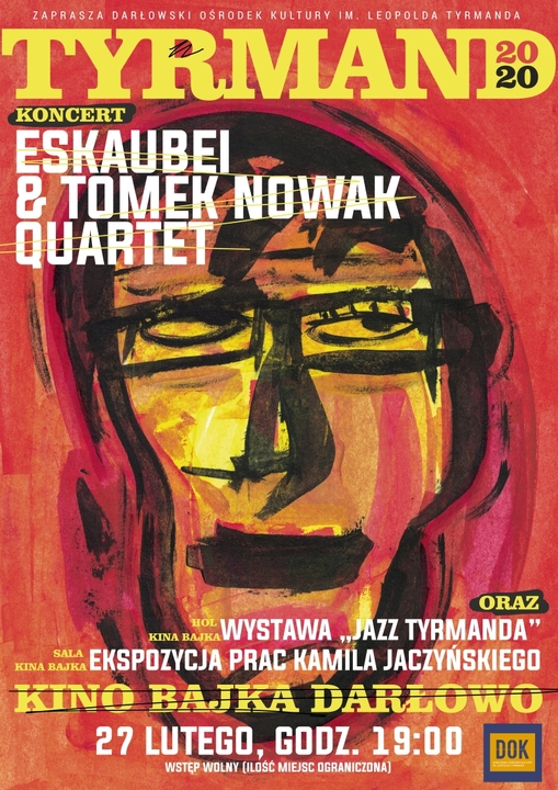 Przy tej okazji mamy przyjemność zaprosić Państwa na wyjątkowy koncert jazzowo-rapowego zespołu ESKAUBEI & TOMEK NOWAK QUARTET. Koncert odbędzie się w darłowskim Kinie Bajka w dniu 27 lutego o godz. 19:00, wstęp wolny (ilość miejsc ograniczona).