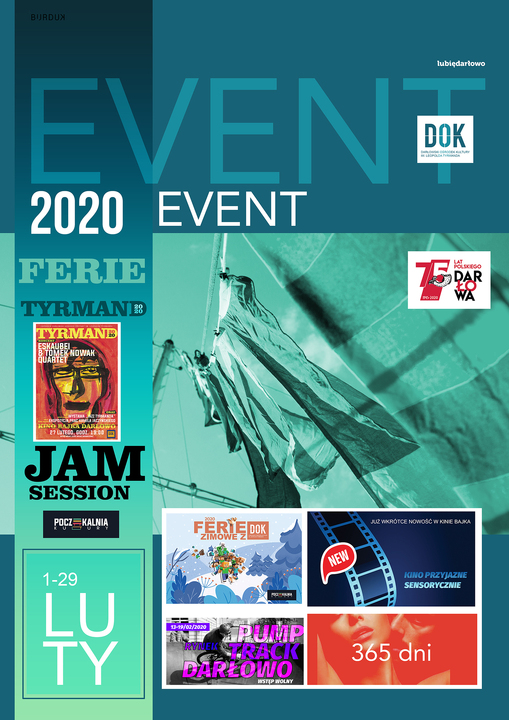 29 lutego: 2020Tyrmand - Seans z powidłami: Jam Session muzycznie na poduchach. Poczekalnia Kultury, godz. 16:00.Wspólny projekt DOK oraz Poczekalnia Kultury, Puls Impulsion, i Stowarzyszenie KSR.