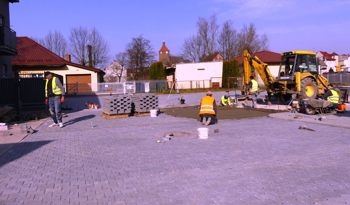 Trwają końcowe prace budowlane związane z wykonaniem przebudowy nawierzchni placu miejskiego w Darłowie na końcu ulicy 1 Maja. Przy Miejskim Targowisku powstaje fragment ulicy, chodnik i plac parkingowy wraz z kanalizacją deszczową. Łączna powierzchnia, która zostaje utwardzona kostką betonową to około 550 m2. Odbiór wykonanych prac zostanie przeprowadzony w pierwszych dniach miesiąca kwietnia br. Łączny koszt materiałów i robocizny wynosi 97 tys. złotych.