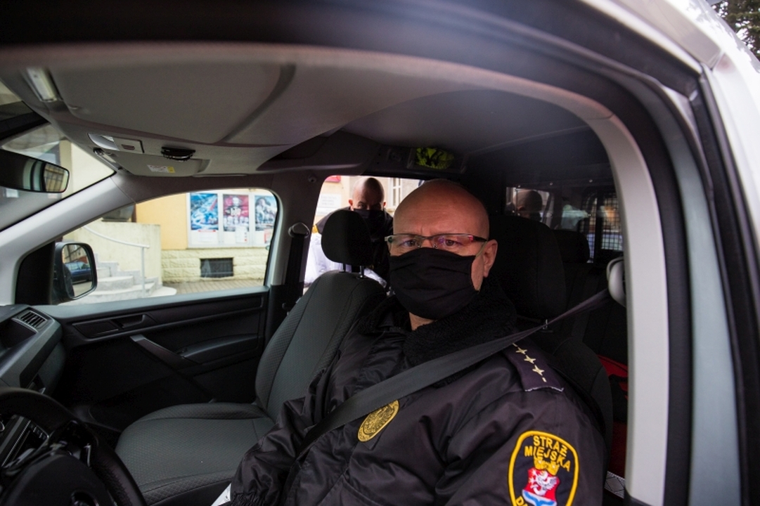 UWAGA! Maseczki znajdują się również w samochodzie Straży Miejskiej, który patroluje miasto. Aby otrzymać maseczkę wystarczy poprosić strażników o zatrzymanie pojazdu.