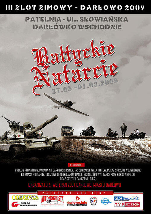 W Darłowie na zamarzniętej i przyprószonej śniegiem nadmorskiej „Patelni” w dniach od 27 lutego do 1 marca 2009 r. odbędzie się III Zimowy Międzynarodowy Zlot Historycznych Pojazdów Wojskowych. Jak nas informuje organizator Zlotu Marian Laskowski tegoroczny program zimowego zlotu pod nazwą „Bałtyckie Natarcie” przewiduje następujące imprezy: „prolog powiatowy”, (czyli jazda przez niektóre miejscowości powiatu sławieńskiego); parada i pokaz historycznych pojazdów wojskowych, sprzętu wojskowego oraz ich właścicieli na darłowskim rynku, a także inscenizacje zimowych walk i bitew. W zimowym obozowisku będzie działać kuchnia polowa, ognisko i przy nim oraz w pobliżu Army Dance, śpiewy i tańce przy koksownikach, a także „Czterej pancerni i pies” Twardziele nie zapomnijcie zabrać ze sobą zimowego sprzętu sportowego.L. Walkiewicz